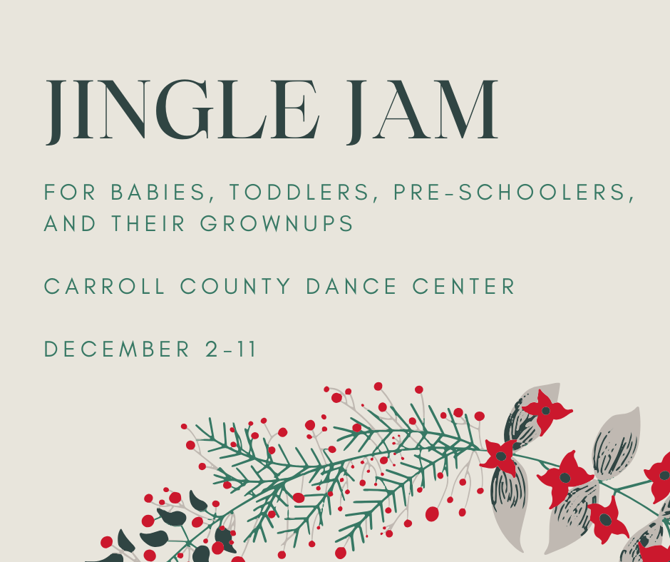 Join Ms. Katie for two weeks of holiday sing-along fun at Carroll County Dance Center from December 2-11. Classes will meet 45 minutes once a week on Tues/Wed/Thurs at 9:30am and 10:45am. $35 for the whole family!